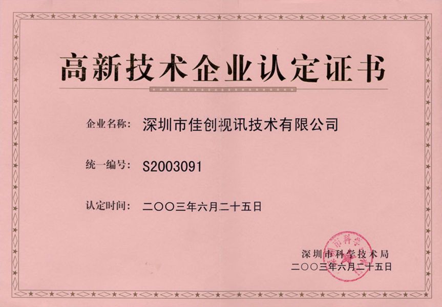 深圳市佳創(chuàng)視訊技術股份有限公司