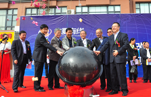 寧夏回族自治區人大常委會副主任馮炯華等領導共同觸摸水晶球,開啟寧夏有線